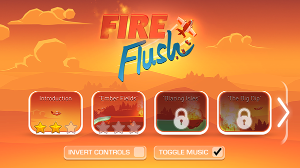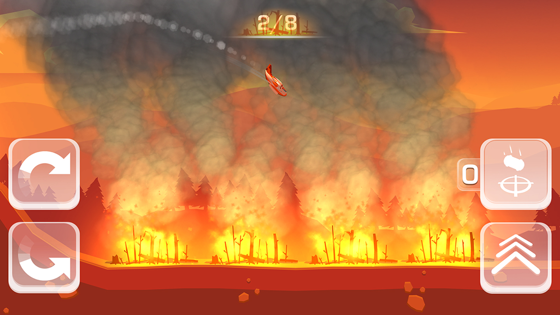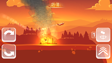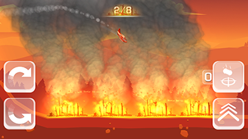 Fireflush is a mobile game where the player controls a firefighting aircraft, battling forest fires. The goal is to extinguish all fires in each level. You do this by dropping water-bombs, which can be resupplied by diving into lakes and oceans.